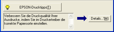 In einem Textfeld unten im Dialogfeld des Fortschrittsbalkens erscheinen Tipps, wie Sie die Epson-Druckersoftware optimal einsetzen können. Alle 30 Sekunden erscheint ein neuer Tipp. Wenn Sie mehr Informationen zum angezeigten Tipp wünschen, klicken Sie auf die Schaltfläche Details.