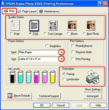 ![]() | Click the Main tab, then make the Quality Option setting. For details, see online help. |