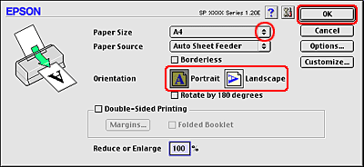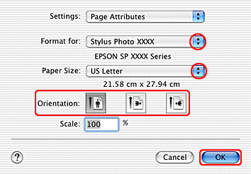 ![]() | Make the appropriate Paper Size and Orientation settings. |