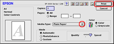 Make the appropriate Media Type, Color, and Mode settings. See online help for details. |