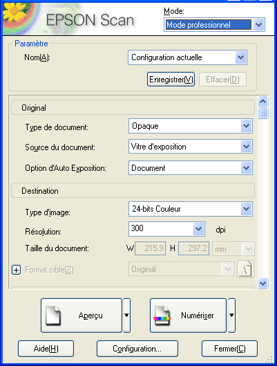 ![]() | Lancez EPSON Scan et sélectionnez ensuite le Mode professionnel. Pour plus de détails sur la sélection du mode de numérisation, reportez-vous à la section Modification du mode de numérisation. |