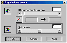 | Per ulteriori informazioni sulla regolazione del livello di saturazione, vedere Regolazione colore. |
