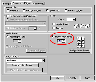 ![]() | Active a caixa de verificação Multi-Páginas situada na caixa de diálogo de esquema e seleccione Poster. |