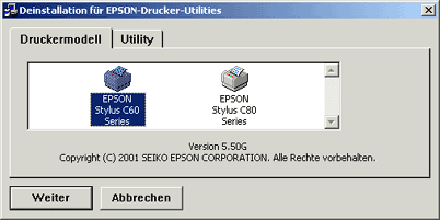 Klicken Sie auf den Drucker, den Sie deinstallieren möchten, und klicken Sie auf OK.