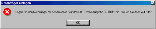 mit der Aufschrift 'Windows 98 Zweite Ausgabe CD-ROM' ein. Klicken Sie