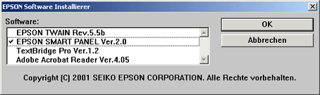 Wählen Sie nur EPSON SMART PANEL aus, und klicken Sie auf OK.