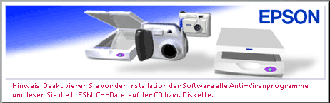 Zum Installieren des Scanners starten Sie einfach das Installationsprogramm auf der CD-ROM mit der EPSON-Scannersoftware und folgen den Anweisungen am Bildschirm. Das hier aufgeführte Beispiel bezieht sich auf den EPSON Perfection 2450 PHOTO. Legen Sie die CD-ROM mit der EPSON-Scannersoftware in das CD-ROM-Laufwerk ein. Wählen Sie die gewünschte Sprache aus.