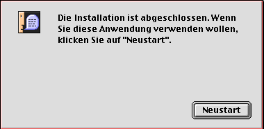 Alle Komponenten werden installiert. Wenn die Installation abgeschlossen ist, wird eine Bestätigung angezeigt. Klicken Sie auf Neustart.