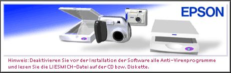 Legen Sie für eine Neuinstallation einfach die CD-ROM mit der EPSON-Scannersoftware ein, und wählen Sie Deinstallieren. Dadurch wird der Treiber deinstalliert. Legen Sie dann die CD-ROM mit der Scannersoftware erneut ein, und führen Sie das Installationsprogramm aus. Legen Sie die CD-ROM mit der Scannersoftware ein. Wählen Sie die gewünschte Sprache aus.