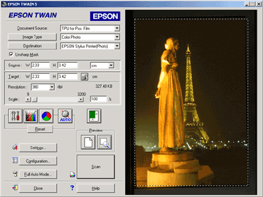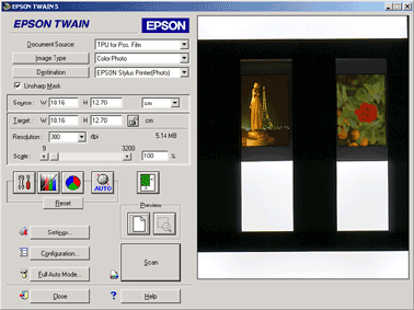 (TPU)? Instructions With the scanner switched off, please connect the Transparency Unit (TPU). Now switch the scanner on and wait for it to initialise. When ready to scan open your program and access EPSON TWAIN. The examples used are with EPSON TWAIN PRO. You will now need to change the field Document Source to the film type you are using (Positive/Negative). Then click Preview.