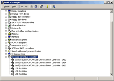 To check that your Universal Serial bus controllers are working and installed correctly you need to click on the + sign next to the component. If the Universal Serial Bus controllers are not displayed or if they have question / exclamation marks next to them please call your computer vendor for further support.