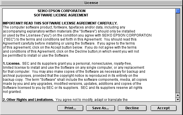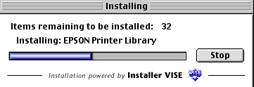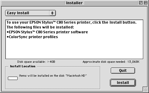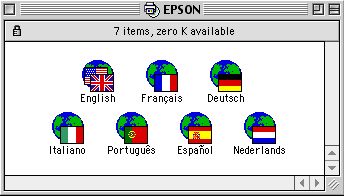 To install a USB printer insert the EPSON Printer Software CD-ROM and follow the onscreen instructions. After installation configure the printer in the chooser so that Apple Talk is inactive and Back Ground printing in On. Ensure that when the printer is switched on that there is a valid port in the chooser. To proceed insert the EPSON Printer Software CD-ROM and select your language. The example installation is for the EPSON Stylus C80.