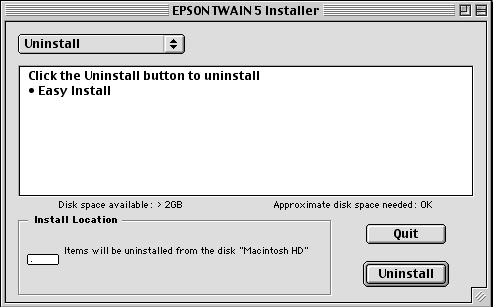 How do I reinstall an EPSON scanner on MAC OS Classic? To reinstall simply insert the EPSON Scanner software CD-ROM and select uninstall. This will uninstall the driver. On completion insert the EPSON Scanner Software CD-ROM and run through the Installer. Insert the ESPON Scanner Software CD-ROM. Select your language.
