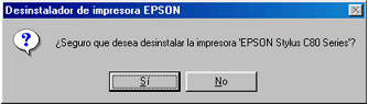 Haga doble clic en Agregar o quitar programas. Haga clic en el software de impresora EPSON y haga clic en Cambiar o quitar.