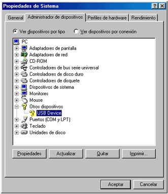 Para comprobar que las controladoras del bus serie universal están instaladas y funcionan correctamente, deberá hacer clic en el signo + situado al lado del componente.