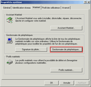 : “ Please install supported twain driver ” ? Instructions Vous devez ouvrir le Gestionnaire de périphériques. Pour ce faire, cliquez avec le bouton droit de la souris sur l’icône Poste de travail située sur votre bureau, puis sélectionnez Propriétés. Les propriétés de votre système s’affichent. Sélectionnez l’onglet Matériel, puis cliquez sur Gestionnaire de périphériques. Pour vérifier que les contrôleurs de bus USB fonctionnent et sont correctement installés, vous devez cliquer sur le signe + en regard de l’élément. Si les contrôleurs de bus USB ne s’affichent pas ou si un point d’interrogation/exclamation apparaît en regard, contactez votre fournisseur d’ordinateurs pour obtenir une assistance complémentaire.