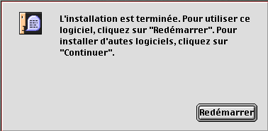 Effectuez l’installation de tous les autres composants. Une fois l’installation terminée, le programme Installation vous l’indique. Cliquez sur Redémarrer.
