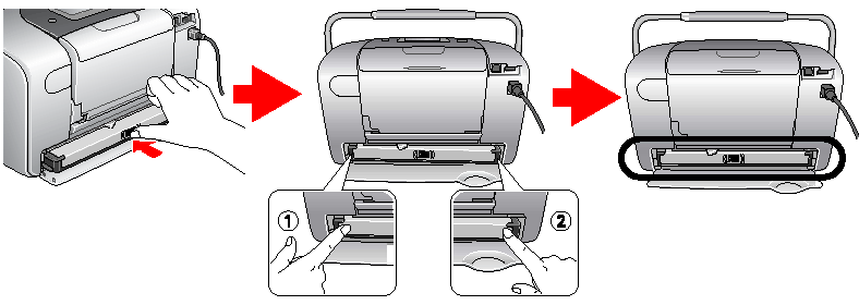7. Repoussez la poignée à l'arrière de PictureMate. Attention : n'éteignez pas l'imprimante pendant le processus de