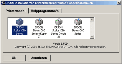 Klik op de printer waarvan u de installatie ongedaan wilt maken en klik op OK.