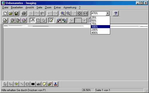 transparanten zo lang met de Perfection 1250, 1650 en 2450? Instructies Reduceer het voorbeeldformaat in de toepassing waarmee u werkt (in dit voorbeeld Imaging) tot 100%.