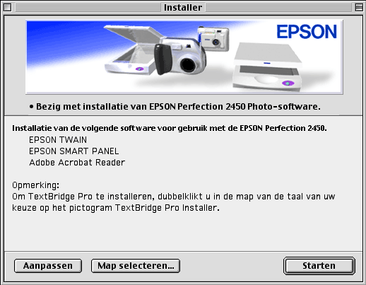 Als u een scanner wilt installeren, plaatst u de cd-rom met EPSON-scannersoftware in het cd-rom-station, start u het installatieprogramma en volgt u de instructies op het scherm. Voor het voorbeeld hebben we een EPSON Perfection 2450 PHOTO gebruikt. Plaats de cd-rom met EPSON-scannersoftware in het cd-rom-station. Selecteer de gewenste taal.