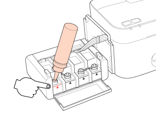 إن وجد أي حبر في زجاجة الحبر بعد إعادة تعبئة خزان الحبر حتى الخط الأعلى، ثبت الغطاء بإحكام وخزن زجاجة الحبر في وضع عمودي لاستخدمها لاحقًا.
