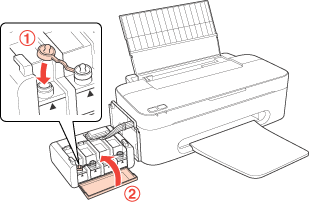 ثبت الغطاء بشكل آمن على خزان الحبر ثم أغلق غطاء وحدة خزان الحبر.