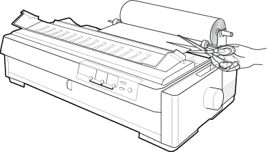 أدخل قضيب حامل بكرة الورق في مركز أسطوانة الورق كما في الشكل.