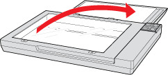 وضع مستندات كبيرة أو سميكةعند المسح الضوئي لمستند كبير أو سميك، يمكنك فتح غطاء الماسحة الضوئية تمامًا، بحيث يتمدد بشكل مسطح بجانب الماسحة الضوئية.