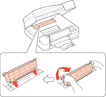 إزالة الورق المحشور من وحدة تغذية الورق التلقائية (ADF)يسري هذا القسم فقط على PX820FWD/TX820FWD/Artisan 835.