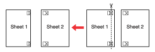 ضع حافة الورقة 1 على الورقة 2 وقم بمحاذاة العلامات المتصالبة، ثم قم بتثبيت الورقتين معًا من الخلف مؤقتًا: