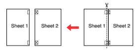 اقطع هامش الورقة 1 في خط طولي عبر منتصف العلامتين المتصالبتين العلوية والسفلية: