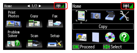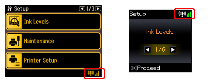بالنسبة إلى الطابعات التي لا تتضمن شاشة Home أو Ready، يتم عرض رمز الحالة في شاشة الوضع Setup.