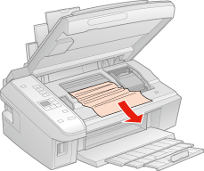 في حالة بقاء الورق المحشور بالقرب من وحدة تغذية الورق الخلفية أو درج الإخراج، قم بإزالة الورق بحرص.