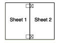 Поставете края на Лист 1 върху горната част на Лист 2 и подравнете пасерите, след това временно залепете двата листа заедно на гърба: