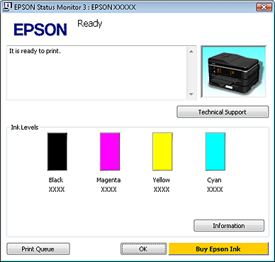 Кликнете върху бутон EPSON Status Monitor. Появява се EPSON Status Monitor.