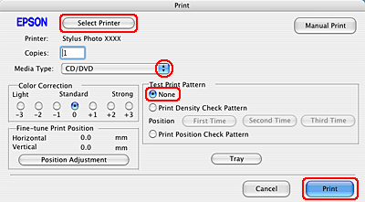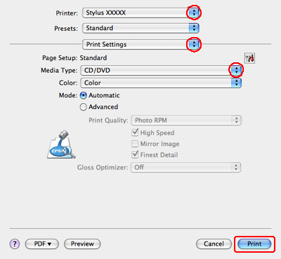 Печатане върху CD/DVD за Mac OS X