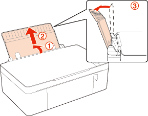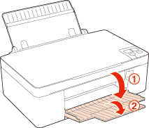 Отворете и плъзнете навън поставката за хартия, след това я наклонете назад, за да плъзнете краищата, както е показано по-долу.