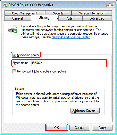 Nejdříve je nutno nastavit tiskárnu jako sdílenou tiskárnu v počítači, ke kterému je přímo připojená. Potom přidáte tiskárnu v každém síťovém počítači, který k ní bude mít přístup.