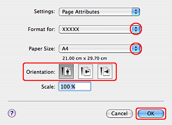 Vyberte používanou tiskárnu jako nastavení Format for (Formát pro).