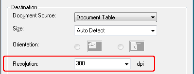 Klepněte na šipku vedle seznamu Resolution (Rozlišení) a vyberte počet bodů na palec (dpi), se kterým chcete obrázek naskenovat.