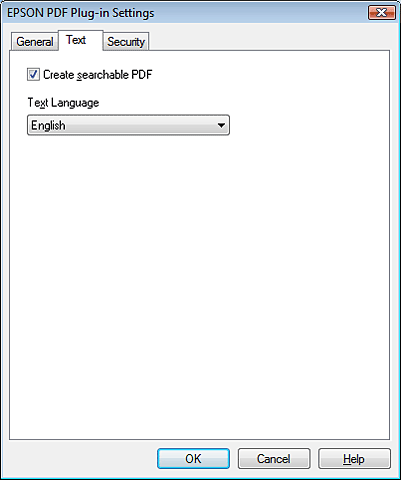 Další nastavení v okně EPSON PDF Plug-in Settings (Nastavení doplňku EPSON PDF) jsou popsána v nápovědě Epson Scan Help.
