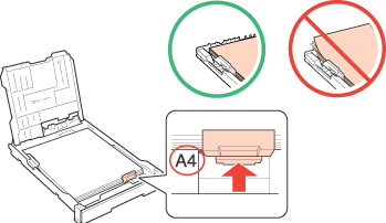 List s nálepkami pro fotografický tisk vložte lícem dolů (viz obrázek níže). Nepoužívejte pomocný zaváděcí list dodávaný s nálepkami pro fotografický tisk.