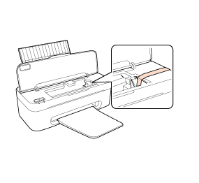 Otevřete kryt tiskárny. Zajistěte držák inkoustových pomocí pásky podle níže uvedeného nákresu, potom zavřete kryt tiskárny.