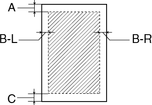 Diagonální čáry označují oblast tisku.