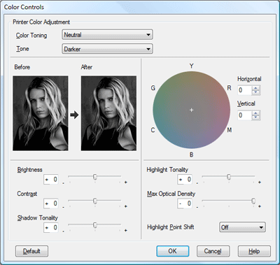 Proveďte požadovaná nastavení v části Color Controls (Ovl. prvky pro barvy) a klepnutím na tlačítko OK zavřete okno.