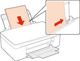 Vložte papír stranou určenou k tisku směrem nahoru a posuňte jej k pravé straně podavače listů. Strana určená k tisku je obvykle bělejší nebo jasnější, než druhá strana.