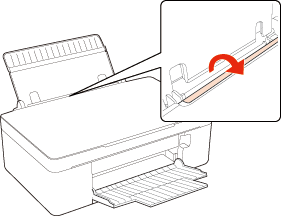 Otevřete a vysuňte podpěru papíru a sklopte ji zpět a zasuňte hrany podle obrázku níže.