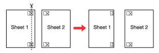 Rozstřihněte slepené listy podél svislé čáry přes zarovnávací značky (tentokrát podél čáry vlevo od křížových značek):