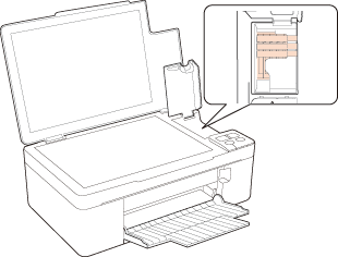 Otevřete víko dokumentů a poté otevřete kryt kazety. Zajistěte držák inkoustové kazety páskou podle obrázku níže.